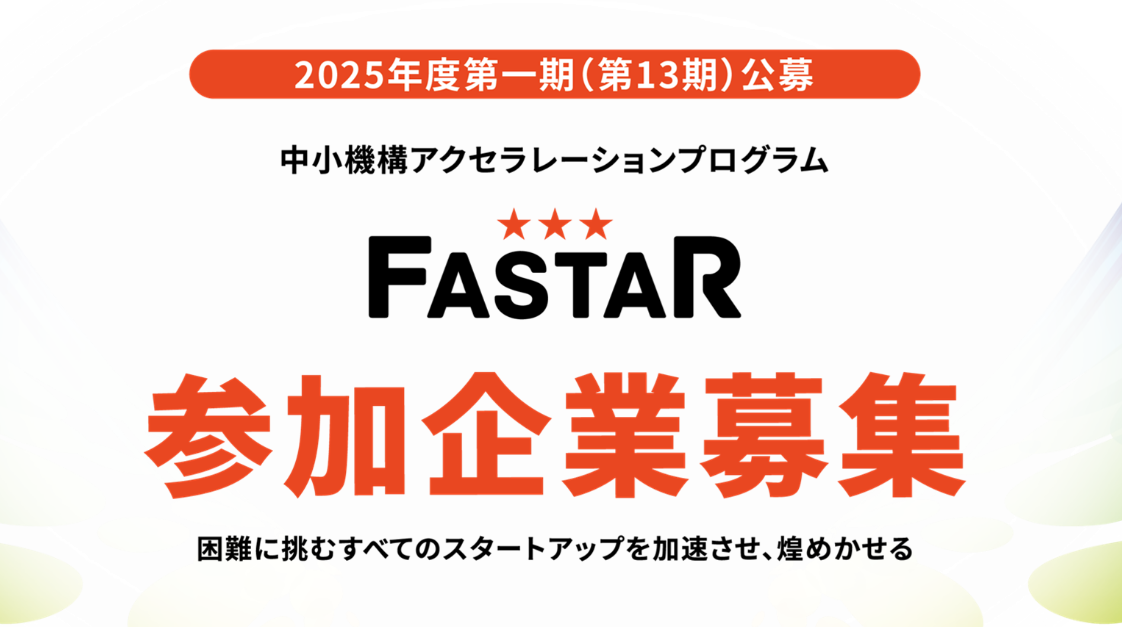 中小機構アクセラレーションプログラム「FASTAR」(2025年度第一期(第13期)公募)のご案内